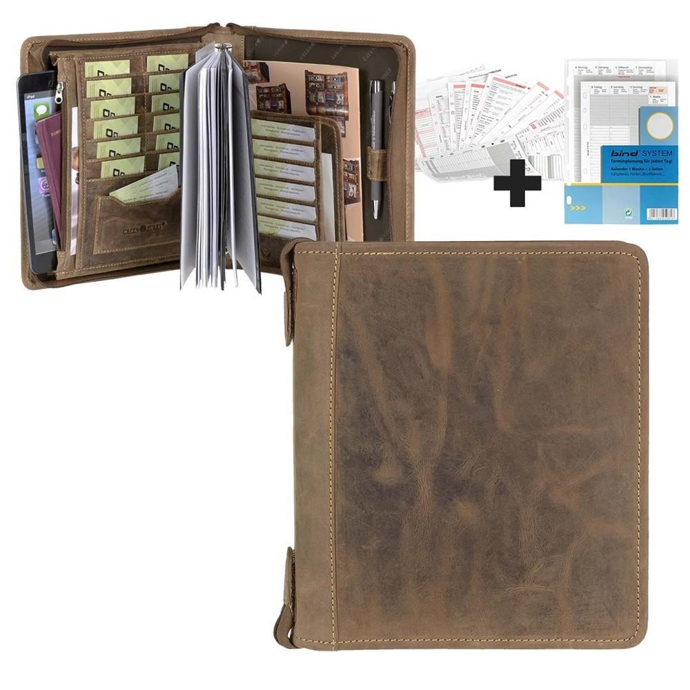 Greenburry Terminplaner A5 (23x26cm) Leder Terminkalender Vintage antik braun mit Reißverschluss und Kalender