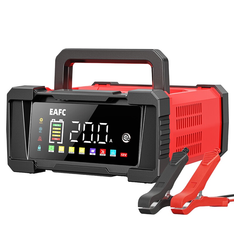 EAFC Tragbares Autobatterieladegerät für 12 V 20 A/24 V 10 A | Motorrad, Lkw, Rasenmäher, Blei-Säure-, AGM-, Gel-, LiFePo4-Batterien, Handgerät, mit Kabelaufbewahrung, Tender Automotive Fast Pulse Repair Trickle Chargers Maintainer, für Automobilbegeisterte
