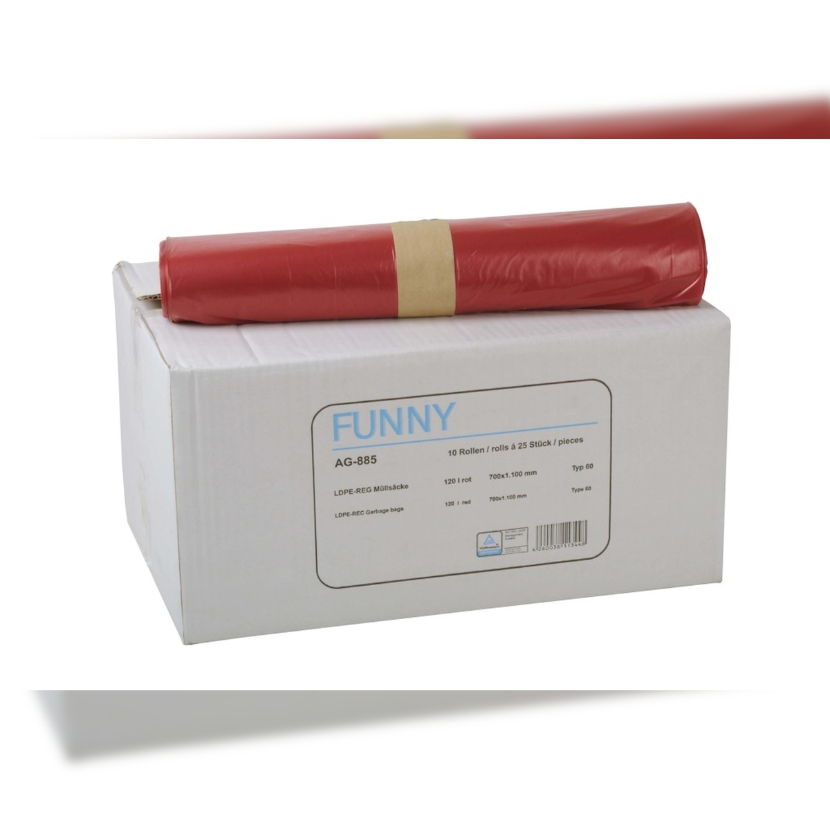 Plock GmbH Müllbeutel Funny - 250 Abfallbeutel - rot - ca. 120 L - Müllsäcke