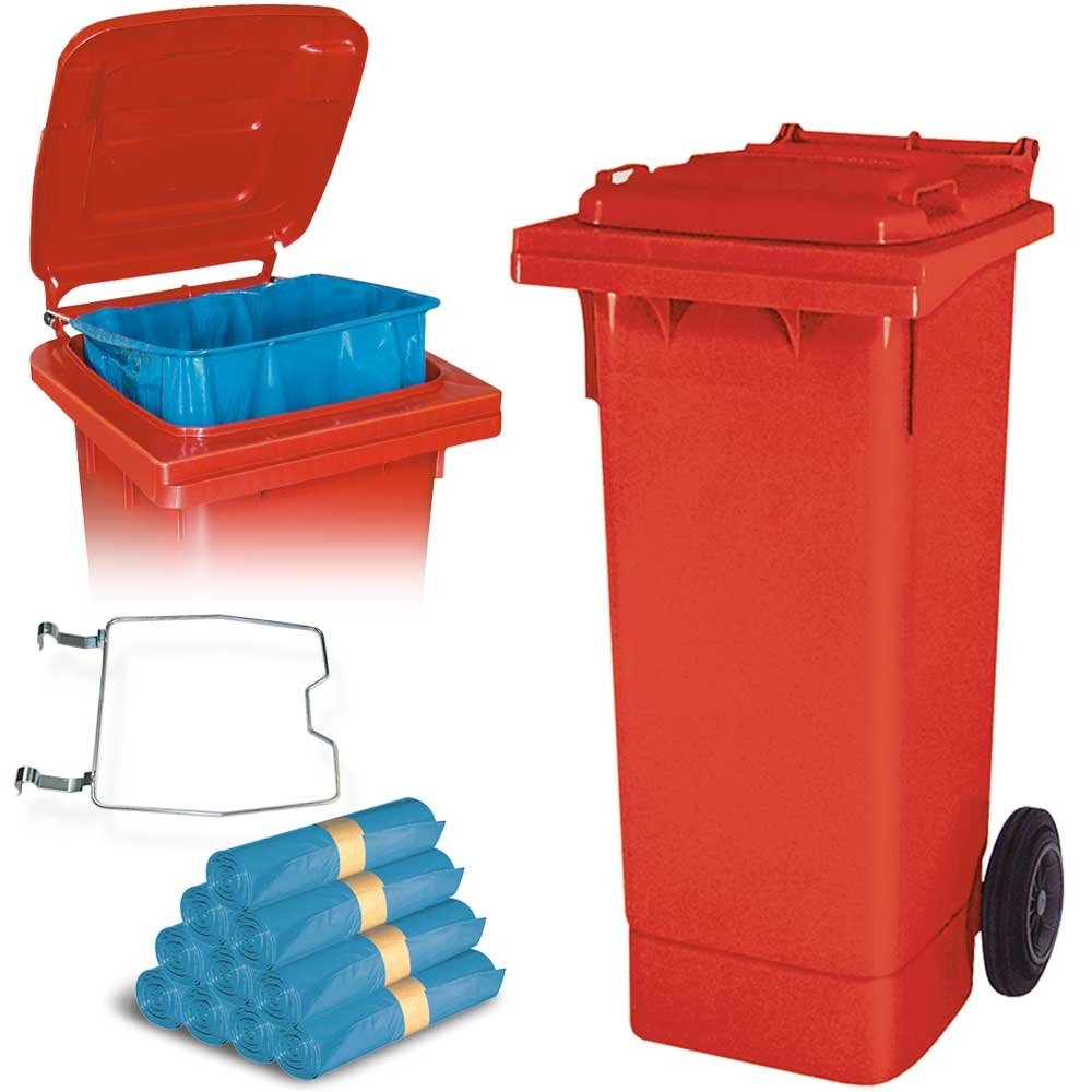 BRB 80 Liter Mülltonne rot mit Halter für Müllsäcke, inkl. 250 Müllsäcke