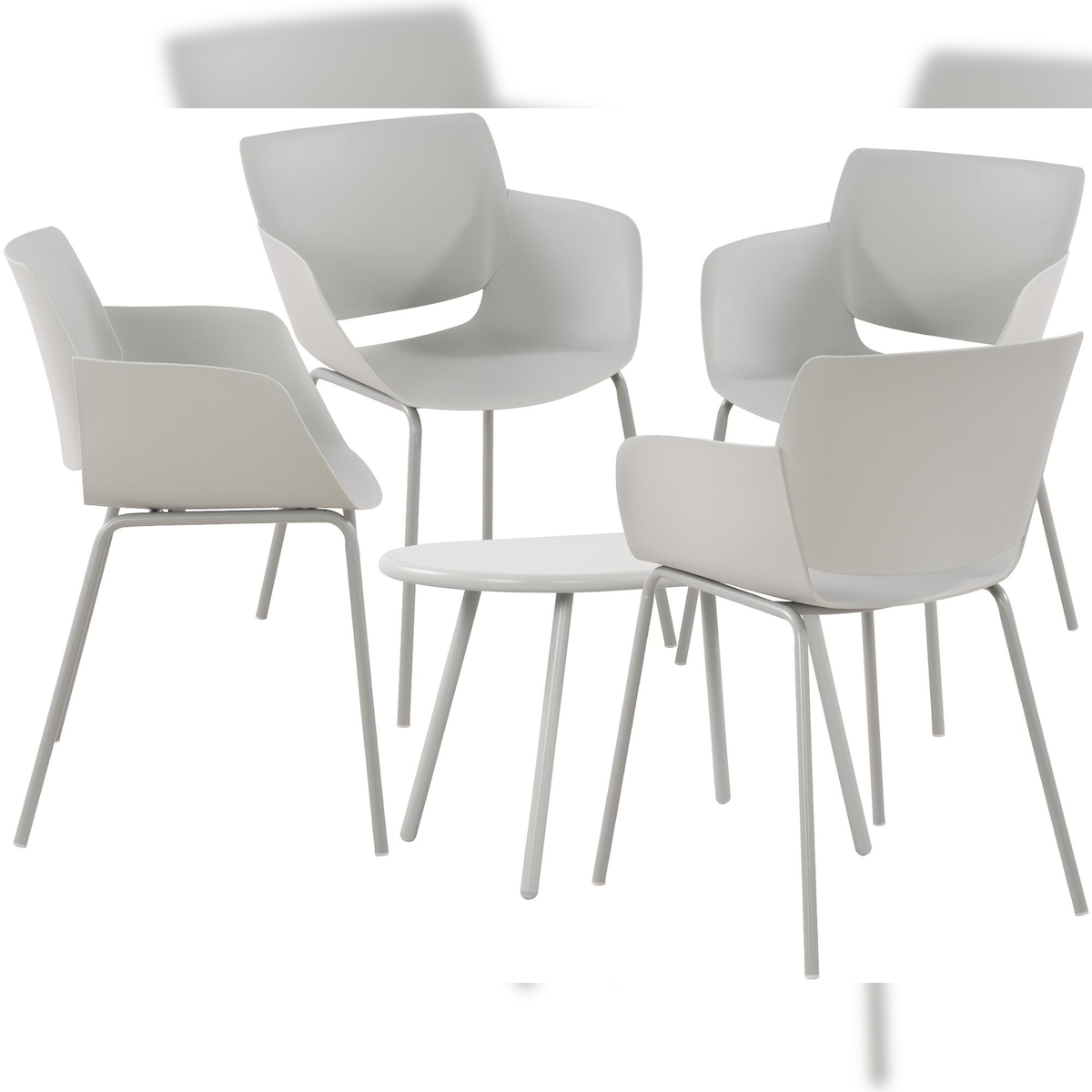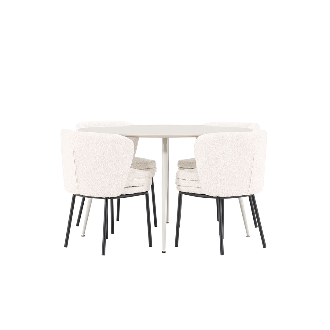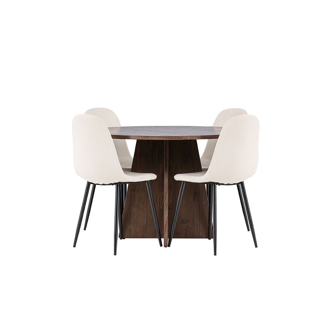 Essgruppe JOCKENHÖFER GRUPPE "Thilo/Florina, Sitzgruppe (Set, 5-tlg, 1 Tisch und 4 Stühle)", tisch wildeiche, stühle beige, Tisch Wildeiche, Stühle beige, Sitzmöbel-Sets, Essgruppe, Tisch Durchmesser 120 cm, Wildeiche, Stühle 360 drehbar