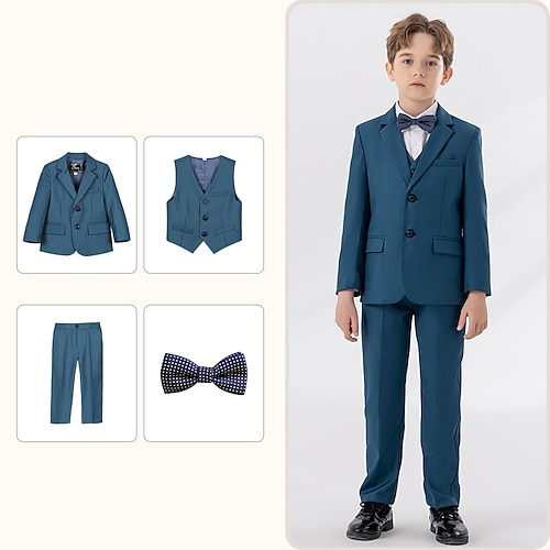 4 pezzi Completo da paggetto Da ragazzo Bambino Tuta Abito formale Blazer e pantaloni Formale Feste San Valentino Di tendenza Fantastico Tinta unica Tasche Rosso Blu Verde Poliestere