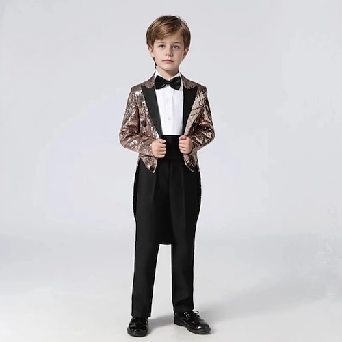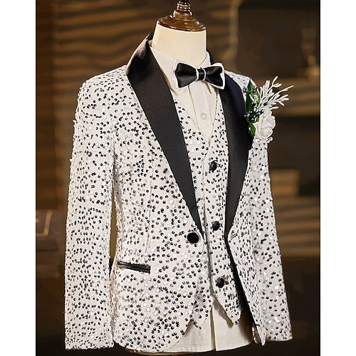 Completo da paggetto Ragazzi Bambini Abito Blazer, gilet, pantaloni, camicia e cravatta Casuale All'aperto Feste Moda Cool Essenziale Tinta unica Paillettes Tasca Bottoni Argento Poliestere