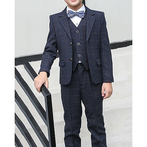 4 pezzi Completo da paggetto Da ragazzo Bambino Tuta Abito formale Blazer, gilet, pantaloni e cravatta Abiti da cerimonia Formale Feste Di tendenza Fantastico A quadri Tasche Blu Cotone