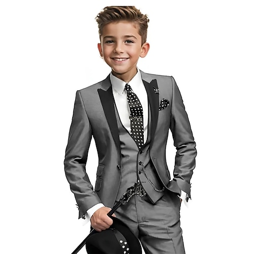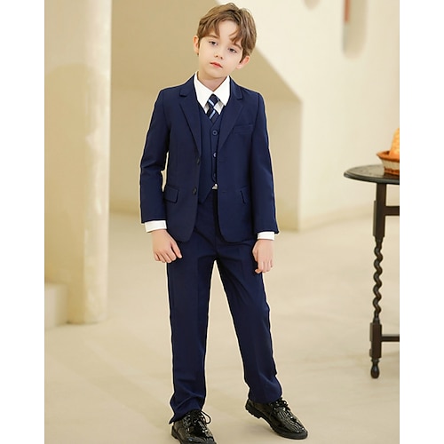 Completo da fedi nuziali per bambini, 3 pezzi, blazer gilet pantaloni da ragazzo, abito formale, casual, da esterno, da festa, alla moda, fresco, basic, tinta unita, tasche, bottoni, blu, nero,