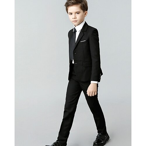 Completo da fedi per bambini, 5 pezzi, blazer pantaloni camicie cravatta ragazzo abito formale casual esterno festa moda fresco basic tinta unita tasca bottoni nero vino viola poliestere
