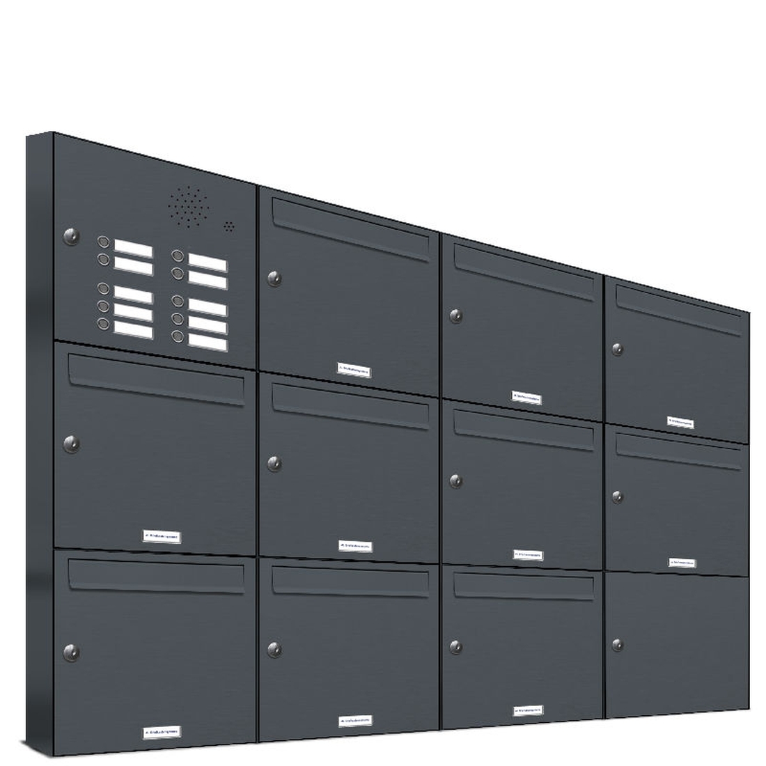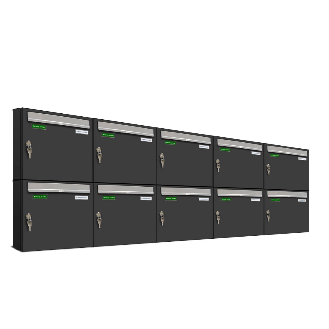 AL Briefkastensysteme 10 Fächer Premium Wand Briefkasten Anlage A4, in RAL 7016 Anthrazit Grau, robust, wetterfest, Artikelnummer: 331P10EA4