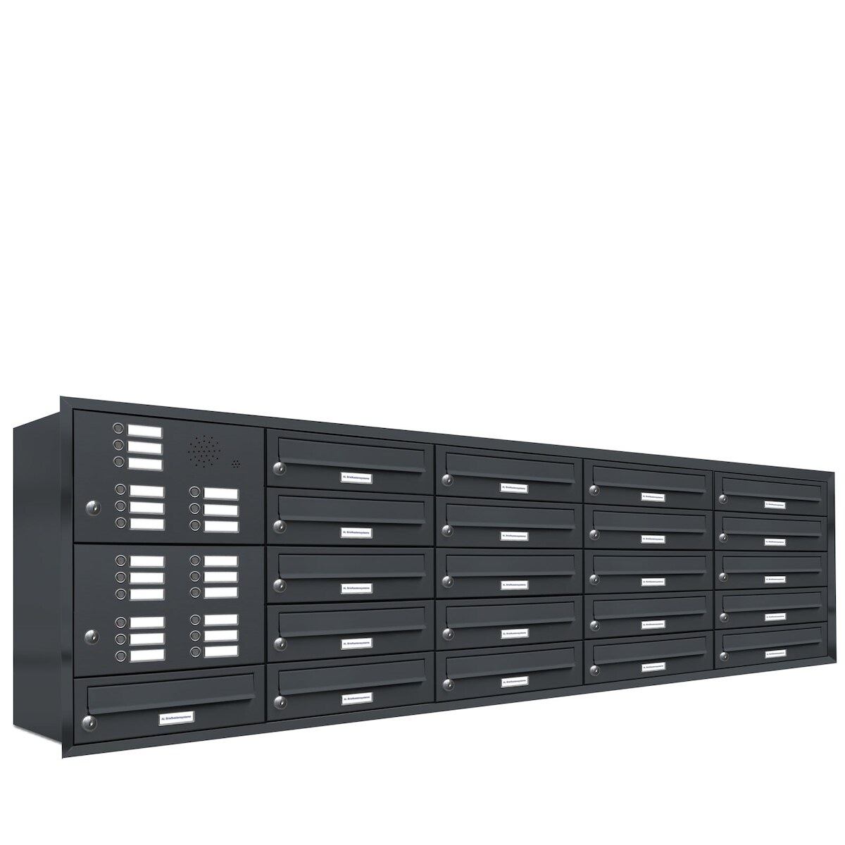 AL Briefkastensysteme 21 Fach Premium Unterputz Briefkasten Anlage mit Klingeln RAL 7016 Anthrazit Grau, A4, wetterfest, Artikelnummer 132P21U5KSP7016