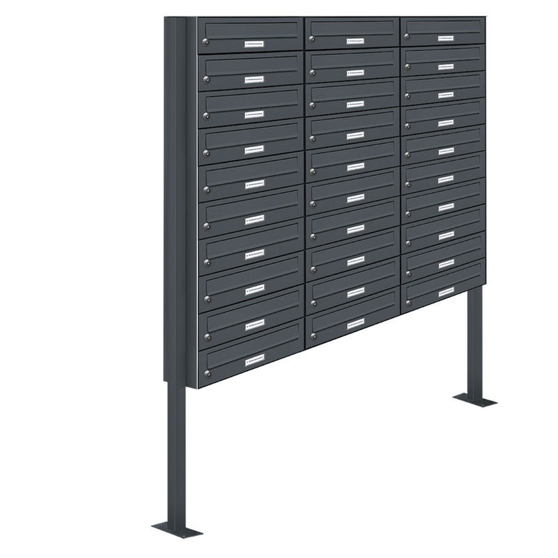 AL Briefkastensysteme 30 Fächer Premium Stand Briefkasten Anlage in RAL 7016 Anthrazit Grau, Post A4, robust, wetterfest, Artikelnummer: 132P30S3P7016