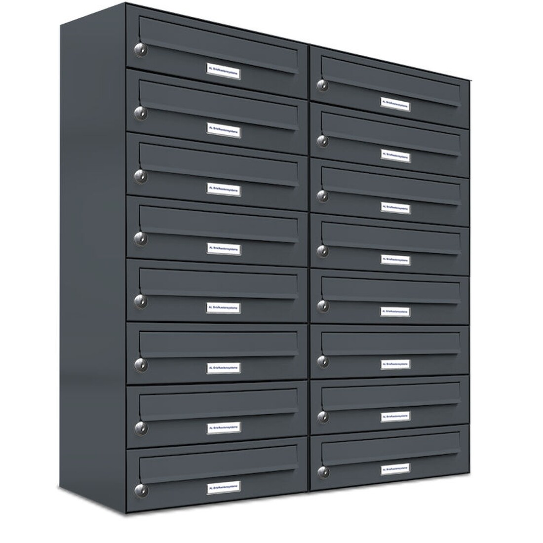 AL Briefkastensysteme 16 Fächer Premium Wand Briefkasten Anlage in RAL 7016 Anthrazit Grau, Post A4, robust, wetterfest, Artikelnummer: 132P16EA4