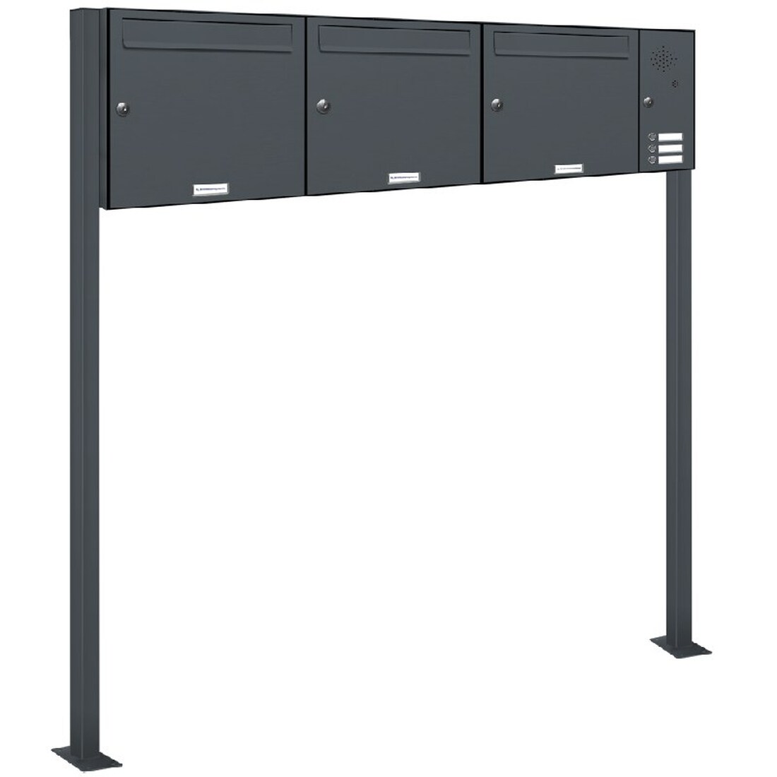 AL Briefkastensysteme 3 Fächer Premium Stand Briefkasten Anlage in RAL 7016 Anthrazit Grau, Post A4, robust, wetterfest, Artikelnummer 331P3S3KSRP7016