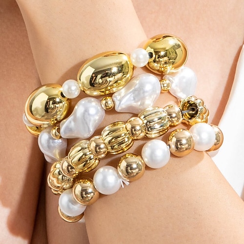 Accessori Samba del Carnevale di Rio Braccialetti Stackable in Tonalità Oro Boho - Perle Finte Bracciali Ampi e Bangles con Charms Geometrici per Donna Costume per Performance al Festival di Brasile