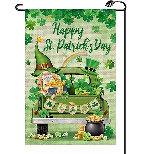 giorno di san patrizio giardino bandiera 12x18 pollici decorazioni esterne benvenuto giardino patio bandiera lucky clover yard gnomi bandiera arcobaleno doppia faccia vacanze bandiere esterne 1 pz