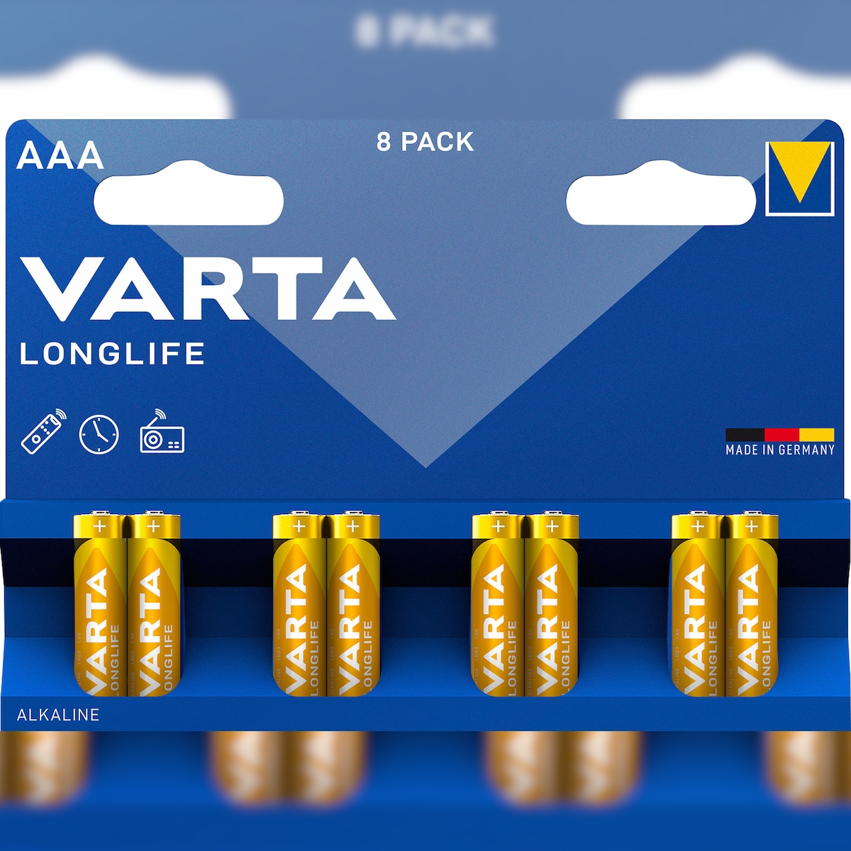 Varta Batterie Alkaline, Micro, AAA, LR03, 1.5V Longlife, Retail Blister (8-Pack)