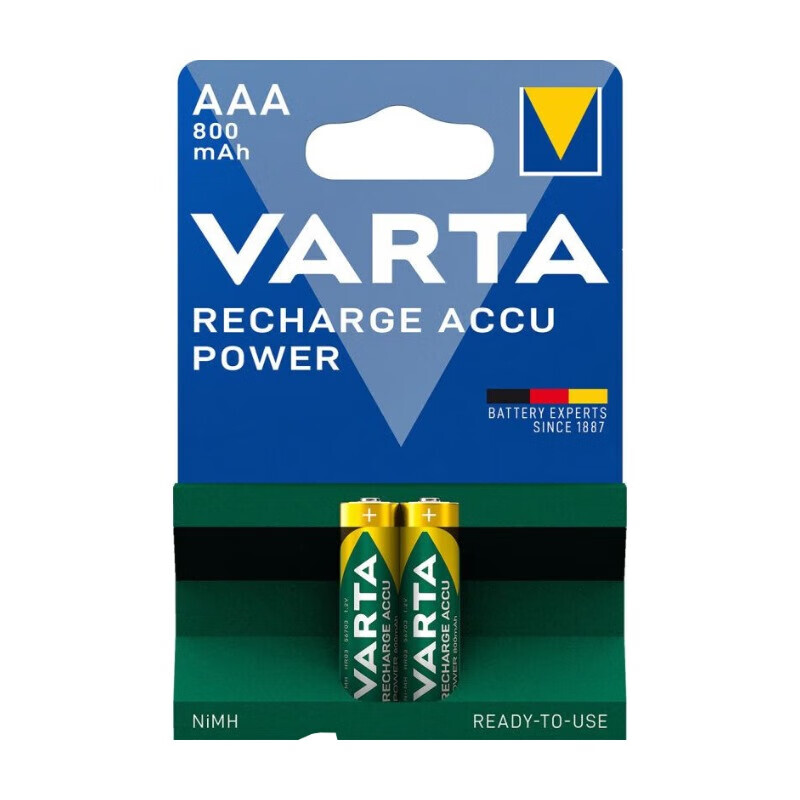 VARTA Batterien AAA, wiederaufladbar, 2 Stück, Recharge Accu Power, Batterie, 800 mAh Ni-MH, kein Memory-Effekt, vorgeladen, sofort einsatzbereit