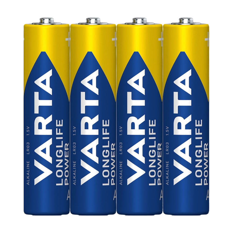 VARTA Batterie Alkaline, Micro, AAA, LR03, 1,5V Longlife Power, Schrumpfverpackung (4er-Pack)