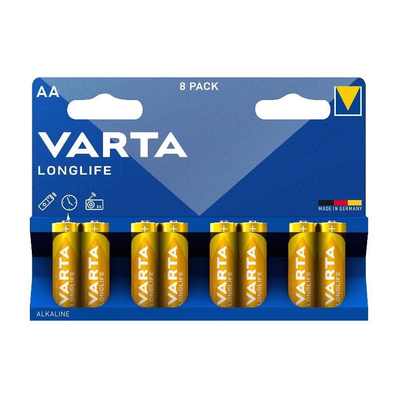 VARTA Batterie Alkaline, Mignon, AA, LR06, 1,5V Longlife, Retail-Blister (8er-Pack)