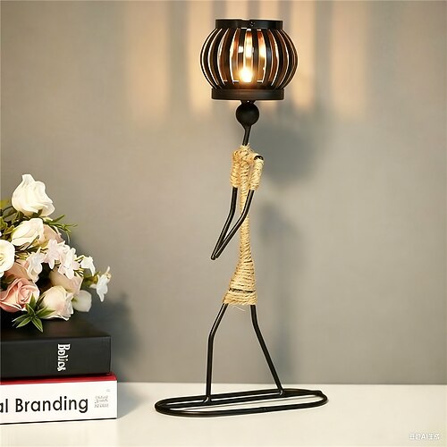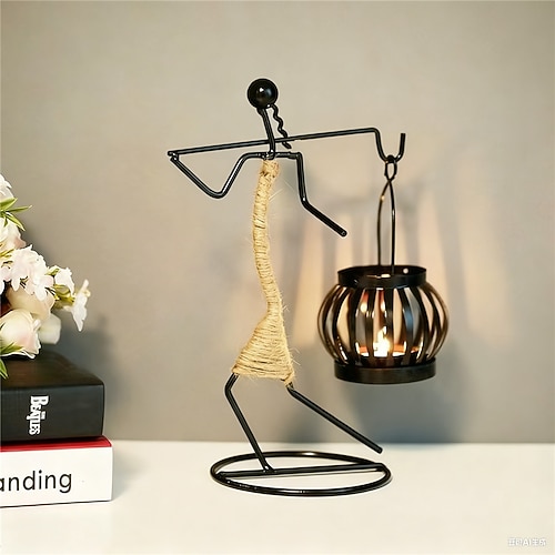 Portacandele in metallo nordico, scultura astratta, personaggio, decorazioni, statuette fatte a mano, decorazioni per la casa, regali artistici, alimentato a batteria, 1 pezzo
