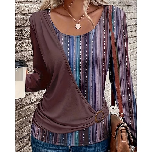 Per donna Blusa Grafico Elegante Manica Lunga Girocollo Top Regolari Quotidiano Ferie Uscire Patchwork Blu Marrone Verde Primavera Autunno