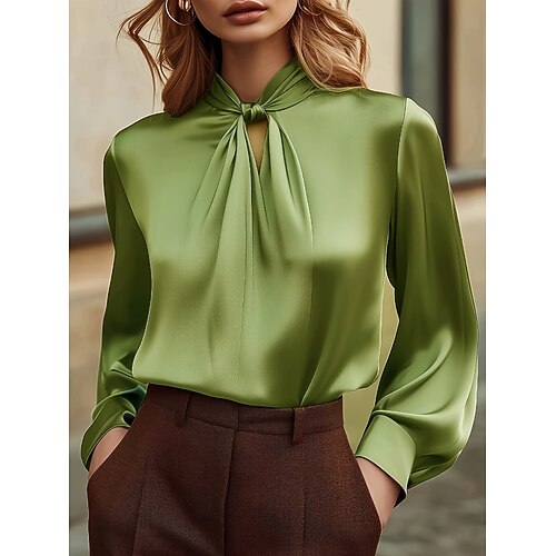 Per donna Elegant Elegante Raso/Satin Blusa Semplice Elegante Quotidiano Cravatta al collo Top Regolari Quotidiano Allacciato Nero Bianco Rosa Viola Autunno