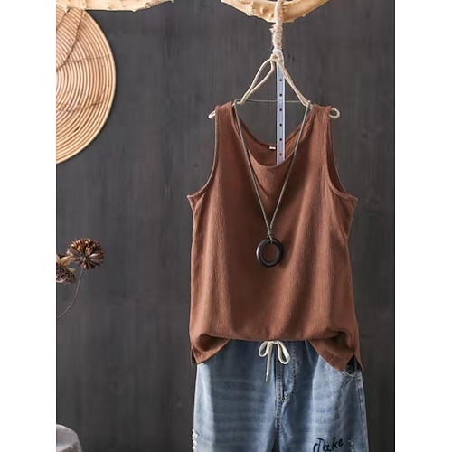 Per donna Blusa Tinta unica Vintage Elegante Essenziale Senza Maniche Girocollo Top Regolari Quotidiano Arricciato Bianco Giallo Rosa Marrone Beige Estate