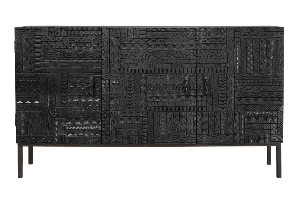 Meuble TV bas moderne en bois et métal 3 portes L220