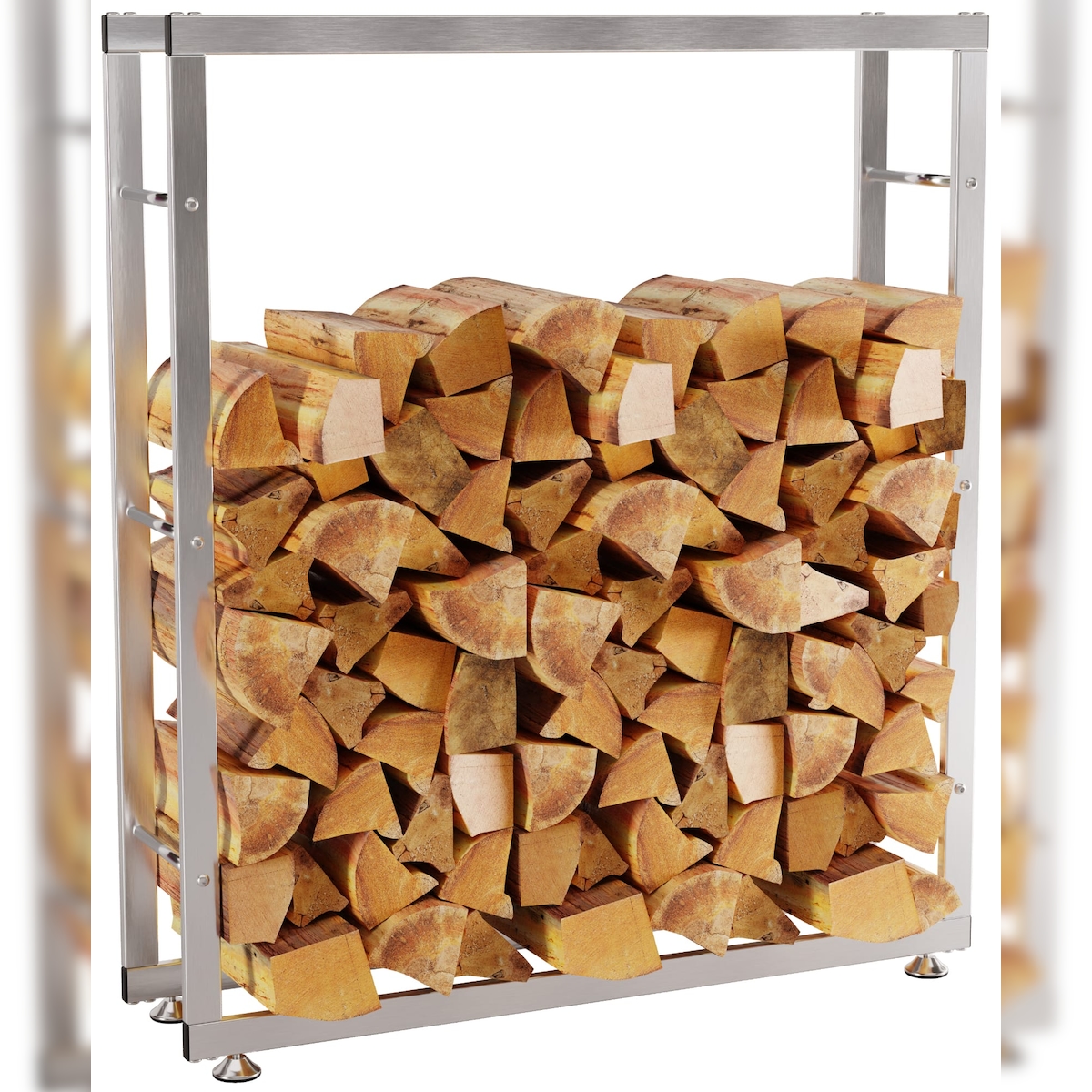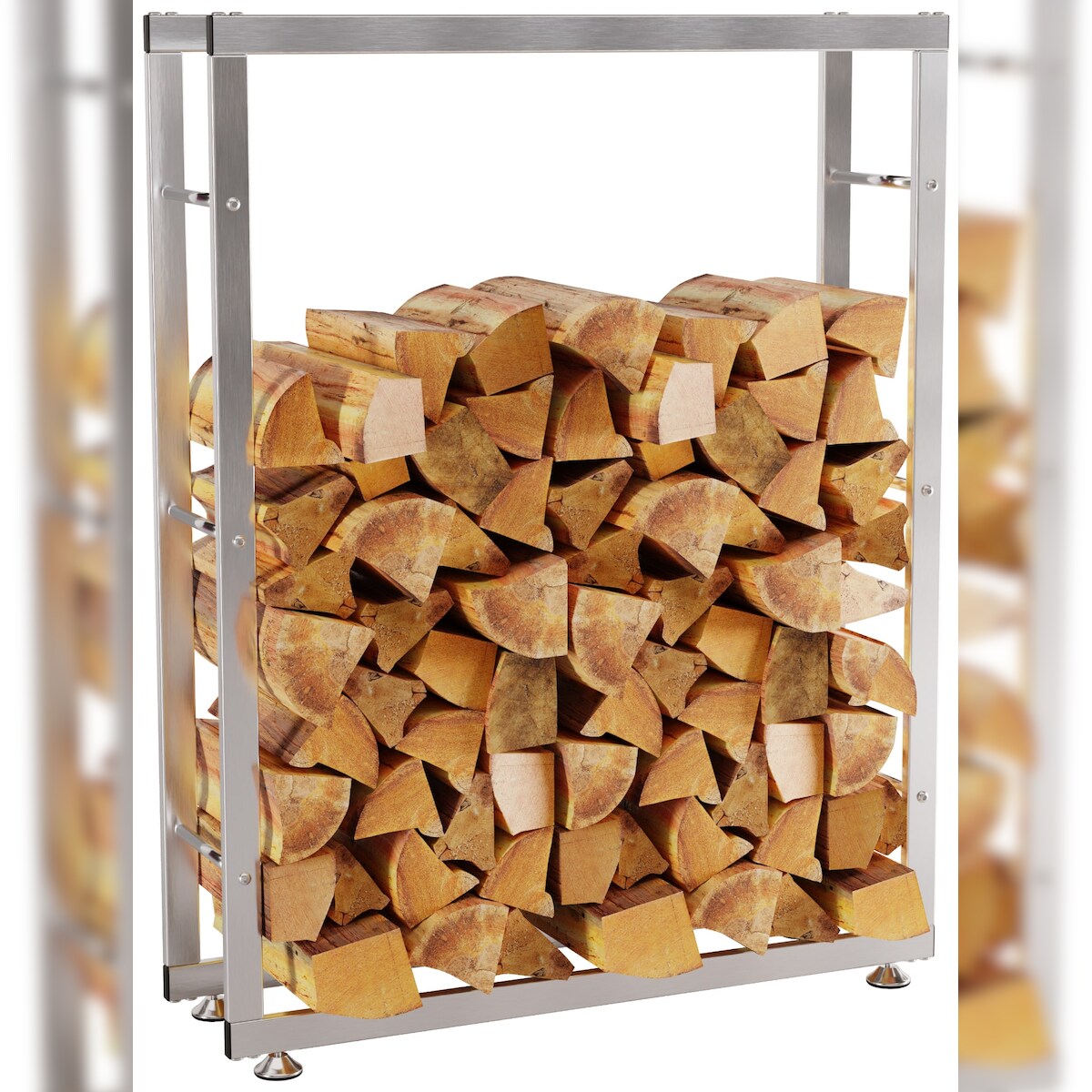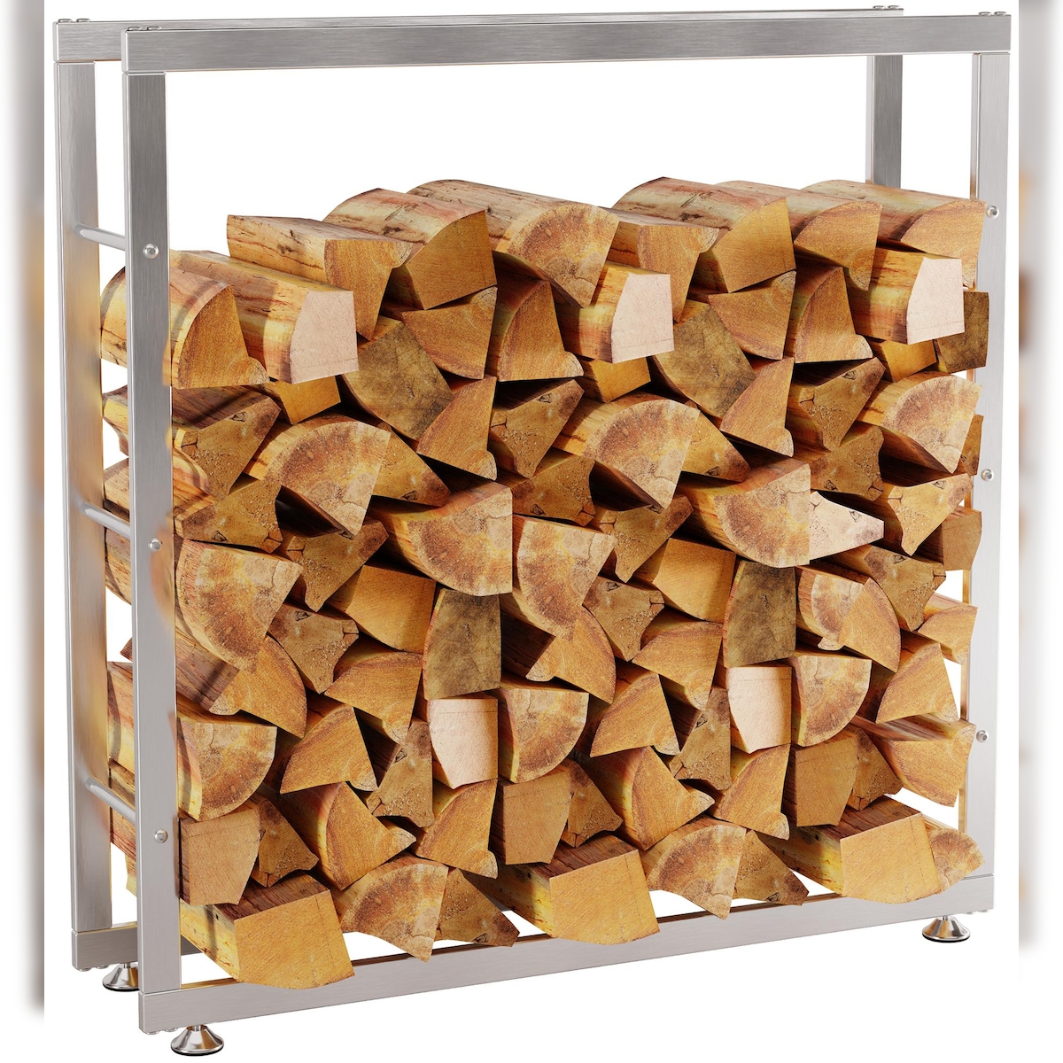 DELUKE® Kaminholzregal Metall PREMIUM Innen und Aussen Edelstahl Brennholzregal innen Kaminholzständer Kaminholzhalter Feuerholzregal Aussen 40x50x100