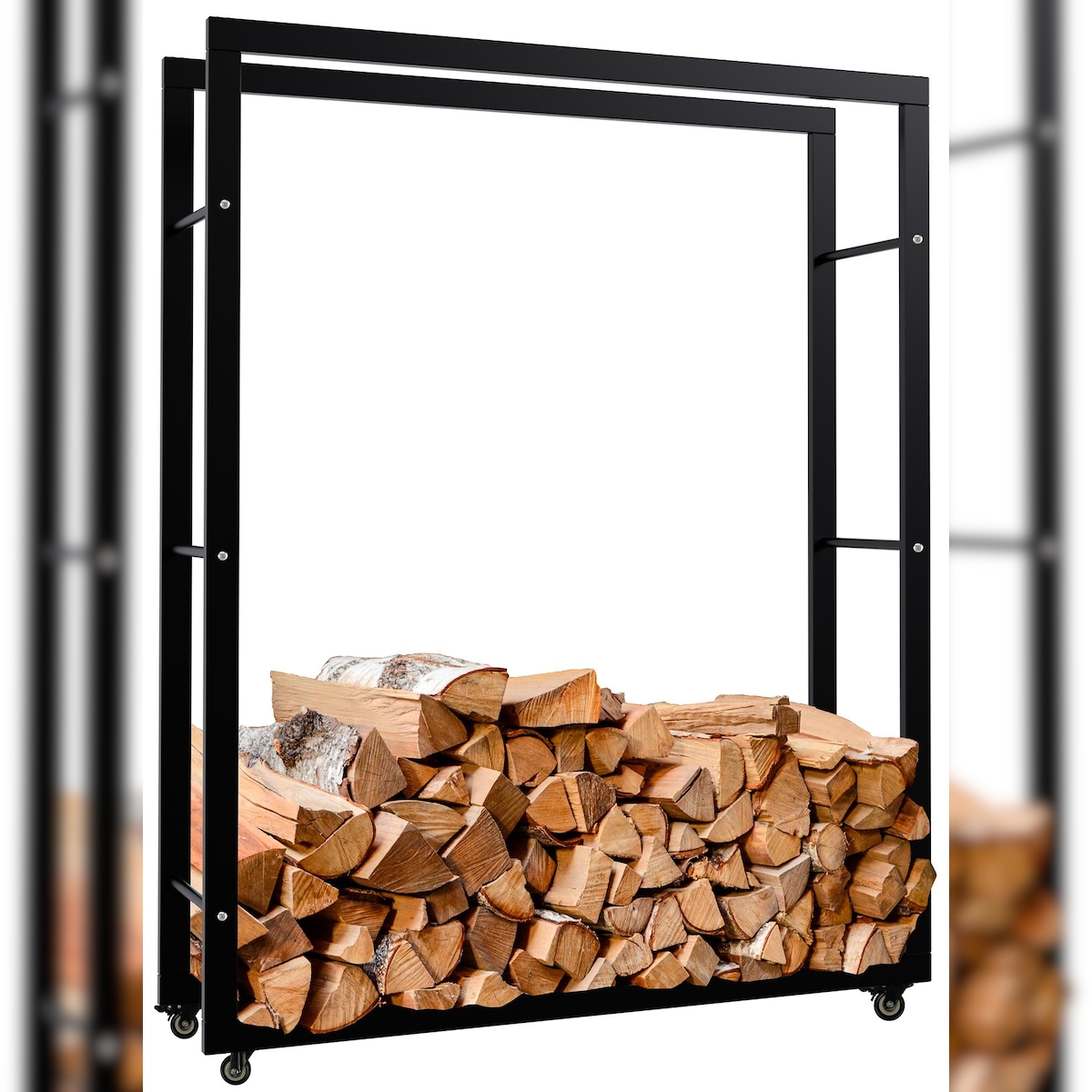 DELUKE® Kaminholzregal innen Metall SATLO mit Rollen Brennholzregal innen Kaminholzständer Kaminholzhalter Feuerholzregal Schwarz, 25x125x150cm