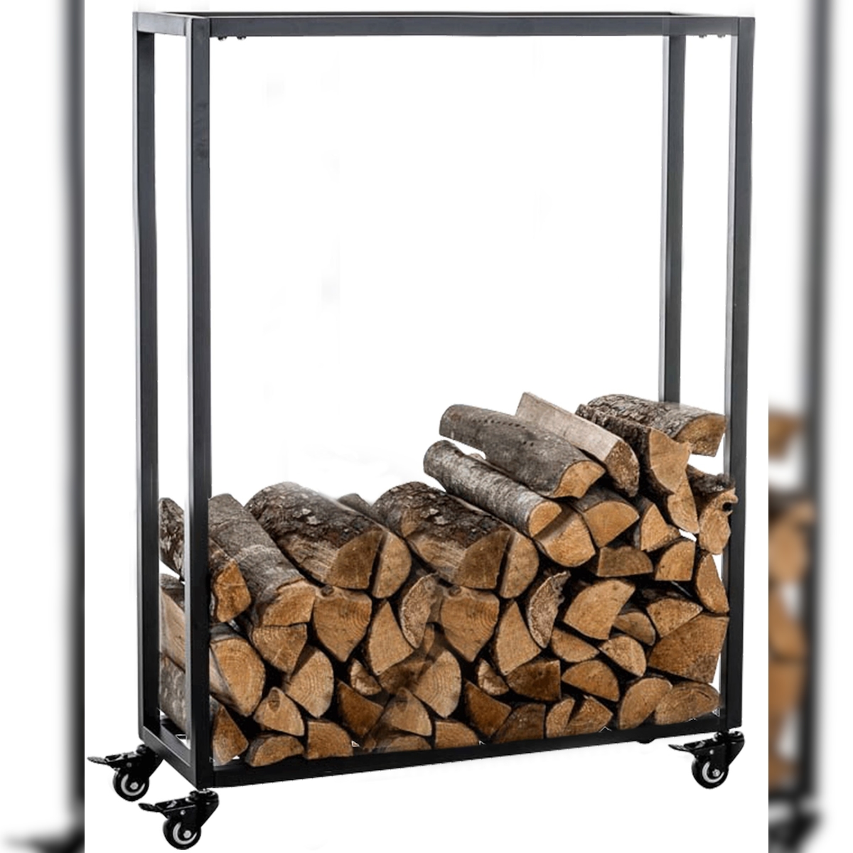 DELUKE® Kaminholzregal innen Metall SATLO mit Rollen Brennholzregal innen Kaminholzständer Kaminholzhalter Feuerholzregal Schwarz, 25x80x80cm