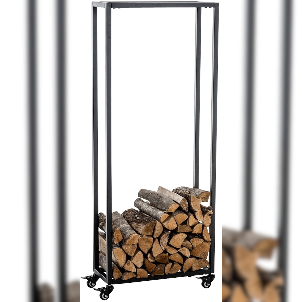 DELUKE® Kaminholzregal innen Metall BETTA mit Rollen, 25x40x150 Brennholzregal innen Kaminholzständer Kaminholzhalter Feuerholzregal