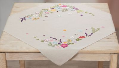 buttinette Nappe à broder en forme de fleur "little bunny"