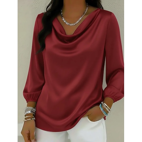 Per donna Camicia in raso Camicia elegante Blusa Tinta unica Elegante Vintage Moda Manica Lunga Scollo a Cascata Top Regolari Quotidiano Feste Ferie Blu Giallo Rosso Viola Primavera Autunno Inverno