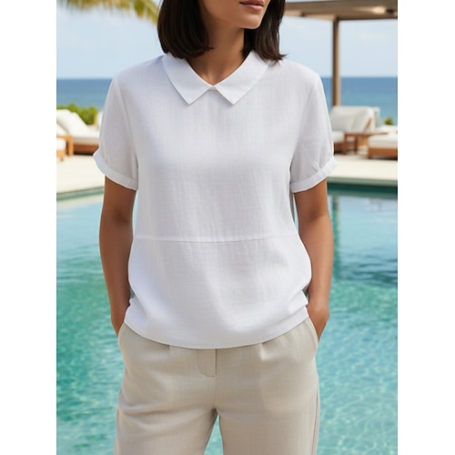 Per donna Camicia Camicie di cotone e lino Camicia da Spiaggia Blusa Semplice Elegante Classico Moderno Manica Corta Colletto a Camicia Top Regolari Quotidiano Ferie Abbigliamento mare Blu Bianco Blu