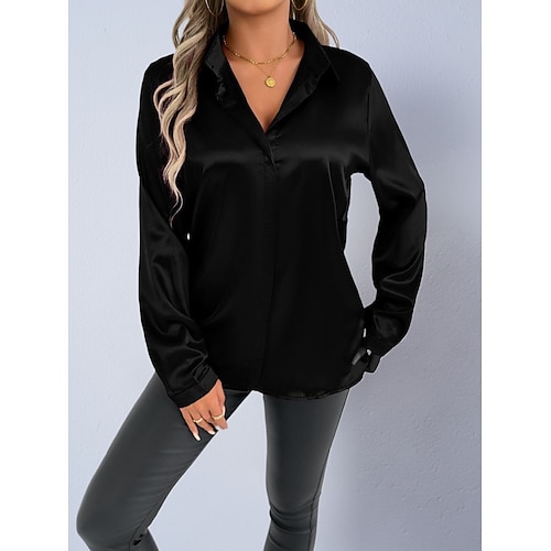Per donna Camicia Camicia in raso Camicia casual Blusa Bottoni Semplice Elegante Essenziale Classico Manica Lunga Colletto a Camicia Top Regolari Quotidiano Ferie Uscire Nero Bianco Rosso Blu Reale
