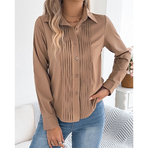 Per donna Camicia Camicia button-down Camicia casual Blusa Arricciato Bottoni Semplice Elegante Classico Moderno Manica Lunga Colletto a Camicia Top Regolari Quotidiano Ferie Uscire Bianco Verde Cachi