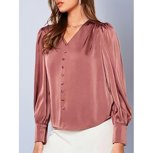 Per donna Camicia Camicia in raso Camicia button-down Camicia casual Bottoni Semplice Vintage Elegante Classico Manica Lunga Scollo a V Top Regolari Quotidiano Lavoro Ferie Rosa Blu Reale Viola