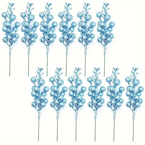 12 steli di bacche natalizie, rami di poinsettia dorati glitterati con bacche e foglie, eleganti fiori di plastica per albero di Natale, ghirlande, feste e decorazioni per la casa