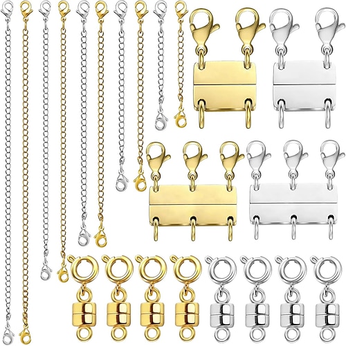 20 pezzi di fermagli magnetici per gioielli e collane con chiusura a strati, estensori per collane in oro e argento, più misure e stili, estensori per catene, fermagli magnetici per collane e