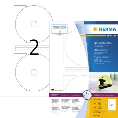 HERMA CD/DVD-Etikett 4460 116mm Maxi weiß 200 St./Pack.