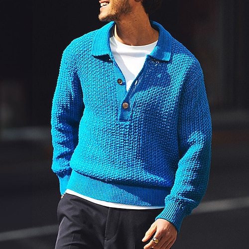 Per uomo Felpa Cardigan A Coste Maglia Top Regolari Lavorato a maglia Semplice Collo ripiegato Vacanza Moda Ufficio Casuale Abbigliamento Primavera Autunno Blu Rosa S M L