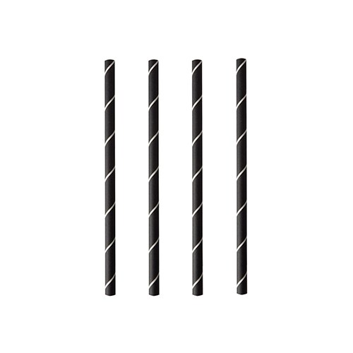 PAPSTAR 250 Cocktail Trinkhalme, Papier Ø 7 mm · 15 cm schwarz/weiss "Stripes"