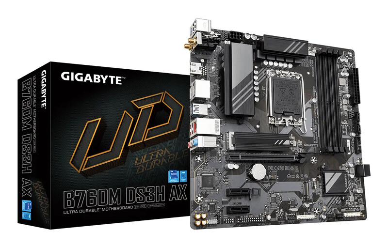 Gigabyte B760M DS3H AX moederbord - Ondersteunt Intel Core 14e generatie CPU's, 6+2+1 fasen digitale VRM, tot 7600MHz DDR5 (OC), 2x PCIe 4.0 M.2, Wi-Fi 6E, 2.5GbE LAN, USB 3.2 Gen 2