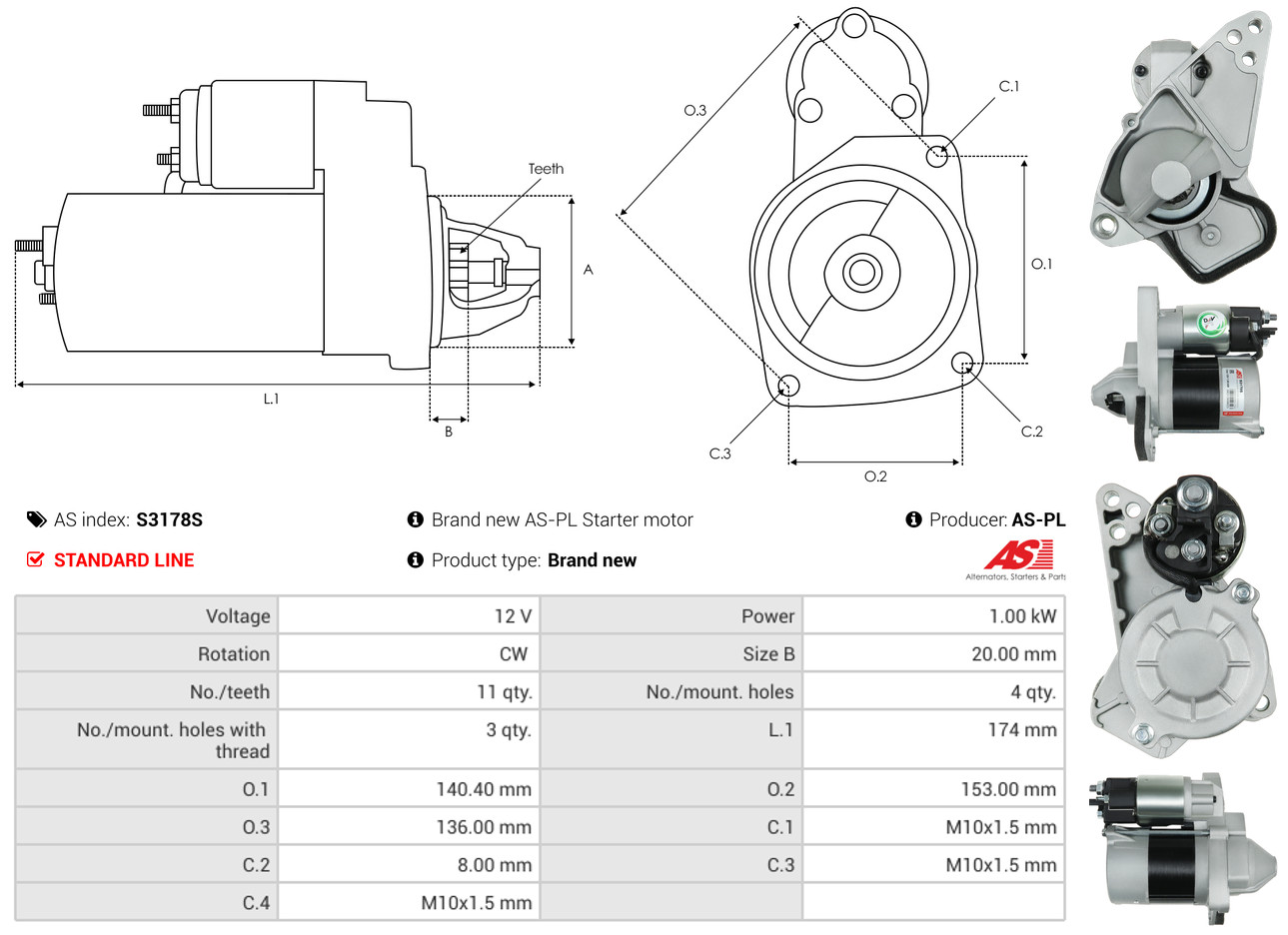 AS-PL Starter S3178S 12V für MITSUBISHI RENAULT MERCEDES-BENZ SMART NISSAN 23300-7970R 4539065400 23300-0557R