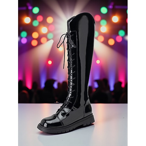 Scarpe da costume da pop star ispirate agli idoli coreani, stivali alti fino al ginocchio con lacci bianchi da bambina, con suola spessa, calzature alla moda per spettacoli di danza e abiti da