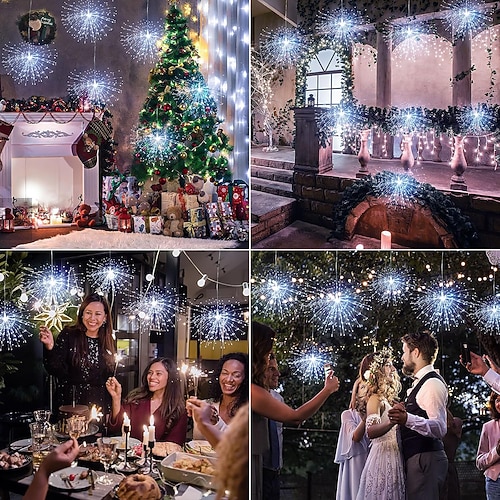 8pcs luci fuochi d'artificio decorazioni natalizie starburst totale 800 led filo di rame luci scintillanti plug in luci della stringa telecomando 8 modalità luci starburst impermeabili per natale