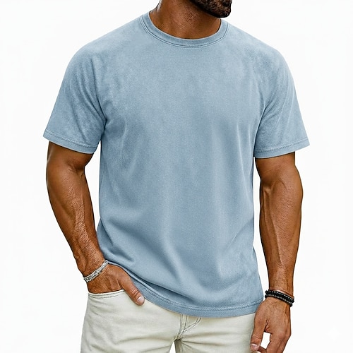 Da uomo Maglietta di cotone Camicia lavata Maglietta Manica Corta Girocollo Estate Primavera Tutte le stagioni Tinta unica Vintage Casual Angosciato Stile Vintage Lavato Casuale Quotidiano Streetwear