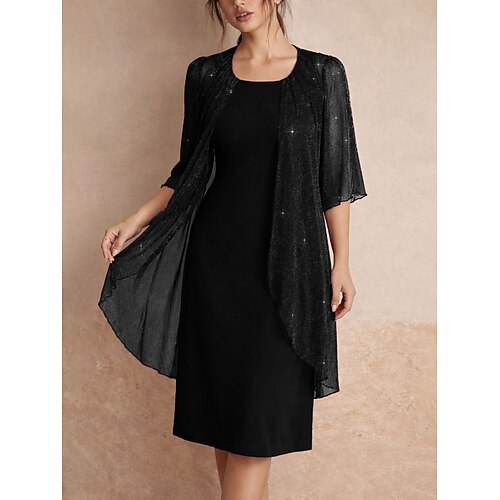 Per donna Mini Abito Tubino Elegante Festa cocktail All'aperto Feste Ospite di nozze Patchwork Tulle scintillante Vestibilità regolare Tinta unica Manica 3/4 Girocollo Nero Rosa Rosso