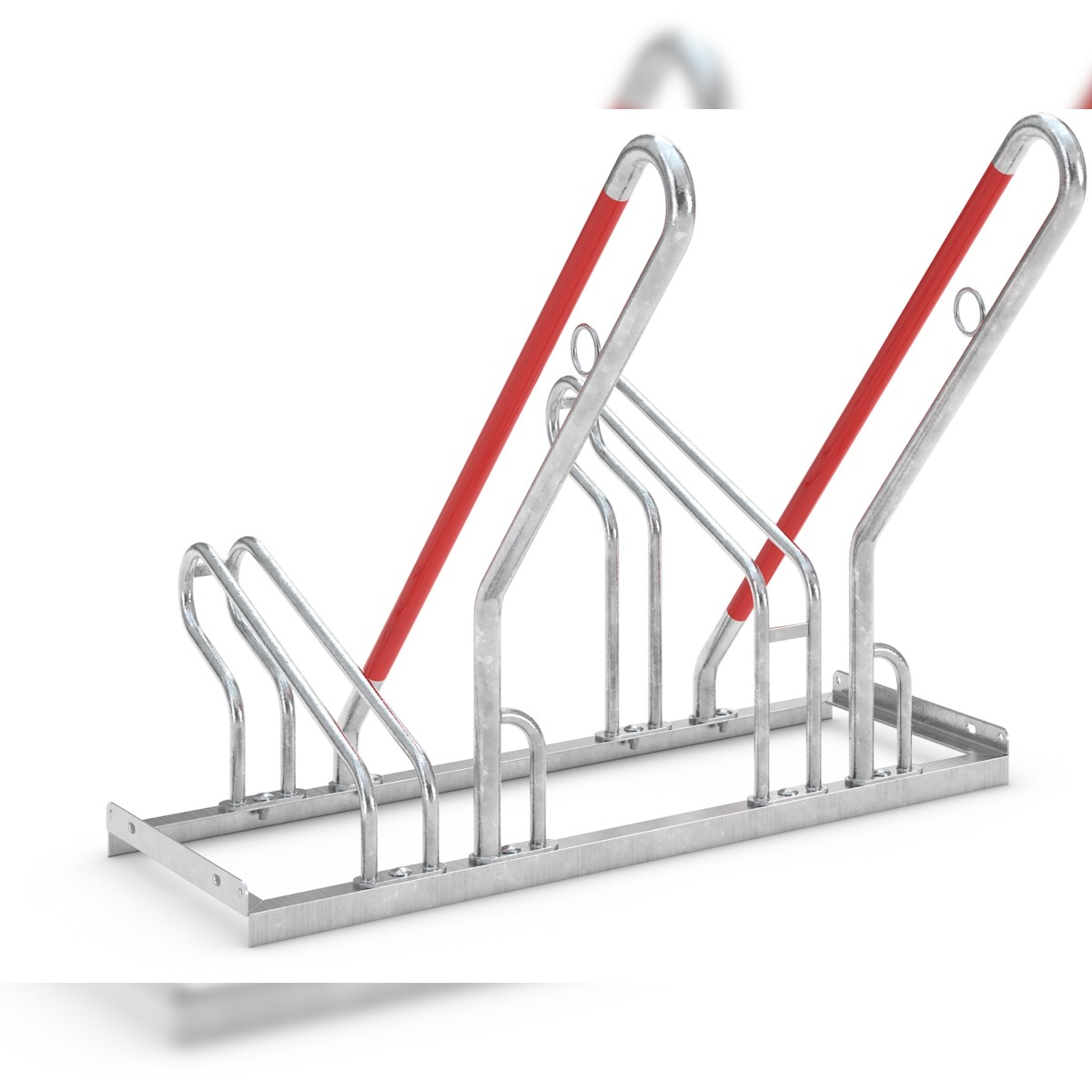 Anlehnparker 4604 | Fahrradständer für einseitiges Parken von 4 Fahrrädern | Freiaufstellung | Abwechselnde Hoch-/Tiefeinstellung | erweiterbar