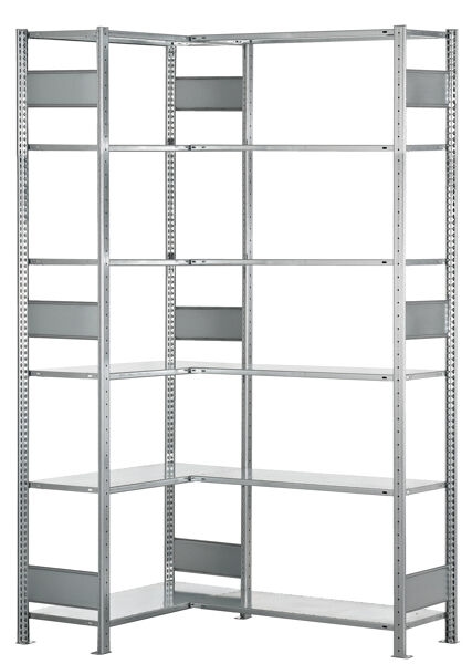 SCHULTE Lagertechnik Eckregal (Felder A + B) 2500 x 1000 x 500, 2x6 Fachböden, Längenriegel, verzinkt