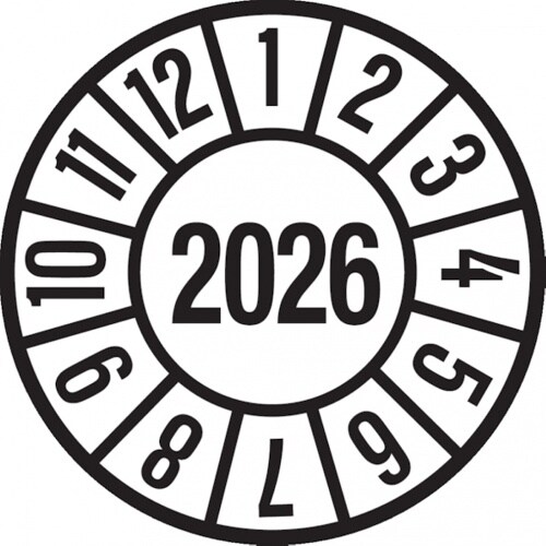 König Werbeanlagen Dreifke® Prüfplakette weiß/schwarz 2026 - 35 mm Folie selbstklebend